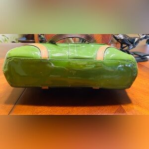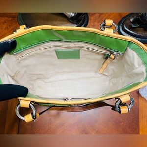 Elevate your style with this Coach women's bag in a striking green and tan combination. Perfect for any occasion, this bag combines elegance with functionality. Very minimal signs of wear including tiny pen marks inside. She is a beauty. Reasonable offers considered. As is.