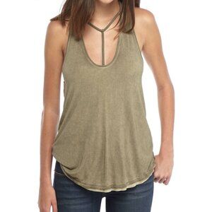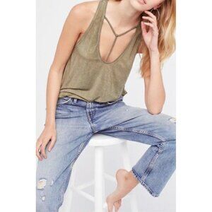 Free People We The Free Olive Green Distressed Strappy Tank Top