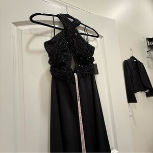 IEENA FOR MAC DUGGAL Black Sequined Cross Neck Halter Jumpsuit