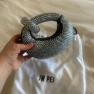 Shine with the JW PEI silver crystal embellished bag. Perfect for adding a touch of glamour to any outfit. Used wrist/clutch. But in great condition.