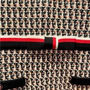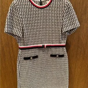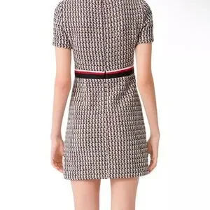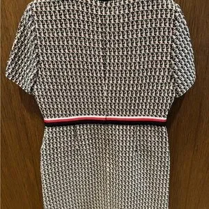 This elegant black and white tweed dress offers a sophisticated look for any occasion. The classic design is enhanced with stylish accents, making it a versatile addition to your wardrobe.