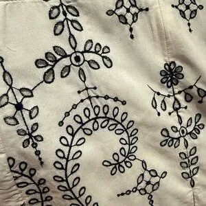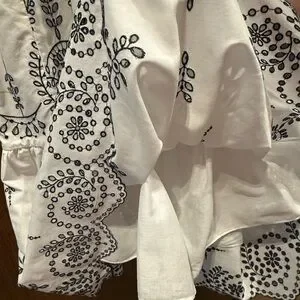 Elegant white blouse featuring intricate black embroidery. Perfect for any occasion.