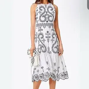 Tory Burch Mariana Embroidered Cotton Midi Dress