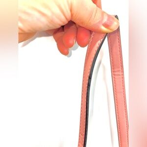 Additionally, this handbag offers versatile carrying options of using either the hand-held carry strap or a long shoulder strap. It has a built-in change purse with zipper closure, includes a built-in top handle, and an adjustable shoulder strap that is part pink chain & the rest is a leather strap with a stylish & adjustable buckle design.
