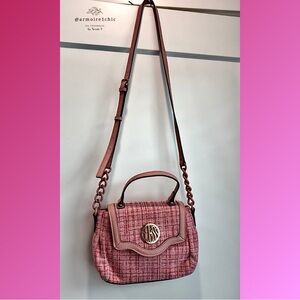 💐GUESS | Pink Gingham Tweed Crossbody Bag with Leather Trim