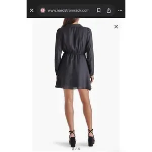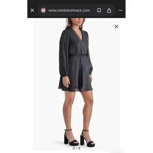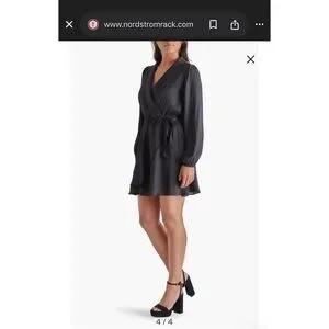Keywords: Steve Madden, faux wrap dress, knee length, shiny leopard, cheetah pattern, party dress, cocktail dress, long sleeve, V-neck, elastic waist, fall fashion, women's dress, elegant, wild theme, machine washable.