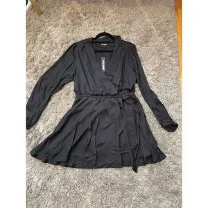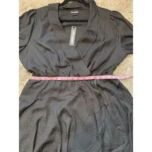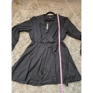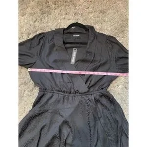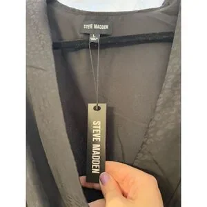 Steve Madden Women's L Black Shiny Leopard Faux Wrap Dress Knee Length