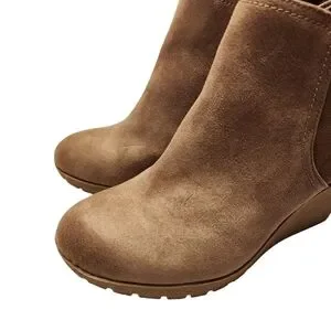 Mia Wedge Ankle Booties Tan Faux Suede Size 7.5