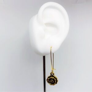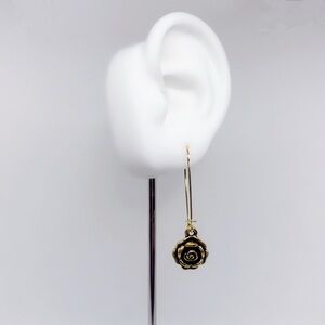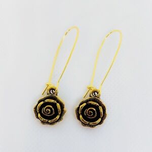 Artisan Handcrafted Antiqued Brass Long Kidney Wire Detailed Rose Earrings!
