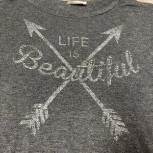 Y2K Moonchild Life is Beautiful Tee Shirt Size L Tassels Fringe Biker Goth