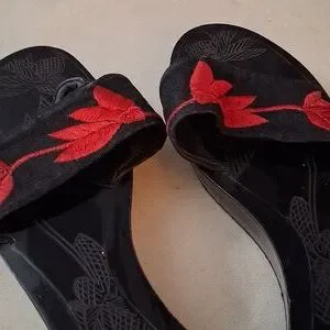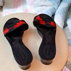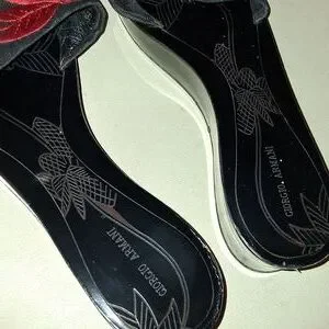 Amazing Giorgio ARMANI Signed Black and Red Women's SANDALS With Red Embroidery