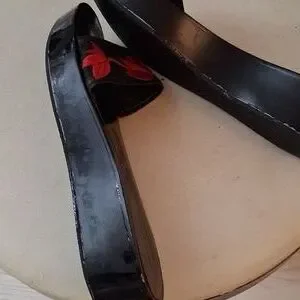 Step out in style with these rare chic vintage in perfect condition Giorgio Armani Lacquered wood black and red women's sandals.Logo and designer name etched in sole of shoe.Beautifully made, Shoe measures 9.5 ". Size 6.5 to 7 w. medium width. Perfect for any occasion, These shoes offer both comfort and elegance. Collectible.
