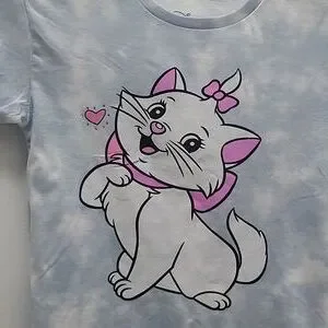 DISNEY GIRLS ARISTOCATS MARIE BLUE AND WHITE GRAPHIC TEE SHIRT SIZE M7/8 NEW