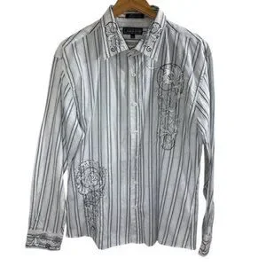 Lamasini Men's Button Up Western Cowboy Long Sleeve Y2K Shirt Large