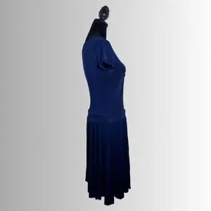 Anthropologie Dolan Ataya Twist Short Sleeve Navy Blue T-Shirt Dress, Size Small. Gorgeous dropped waist dress, cool and lightweight with a front upper twist and flare skirt. Made of rayon and spandex. Dropped waist t-shirt dress casual stretchy pair with cardigan or jacket flattering