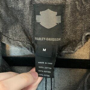 Elevate your wardrobe with this Harley-Davidson moto jacket. Crafted from durable, 100% cotton denim, it combines comfort with bold style. Perfect for layering, it features quilted accents and a sleek design for a timeless, edgy look. Whether you're riding or strolling, this jacket makes a statement with its iconic Harley-Davidson brand.