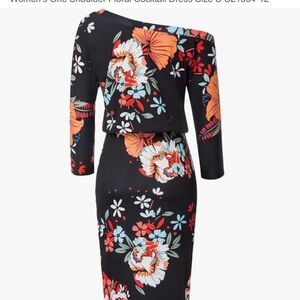 Elegant one-shoulder cocktail dress featuring a vibrant floral design. Perfect for any special occasion.