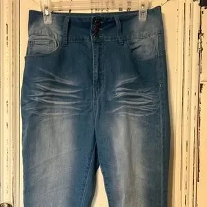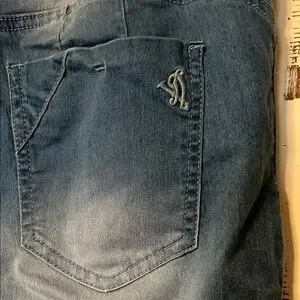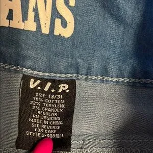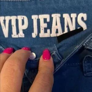 These preloved good condition VIP blue jeggings feature a sleek, tapered fit with a comfortable stretch, ideal for a modern, casual look. The subtle fading and whiskering details add a touch of style, making them a versatile addition to any wardrobe.