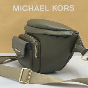 Stylish Michael Kors crossbody bag and wallet set in olive green. Features gold-tone accents and signature logo design.