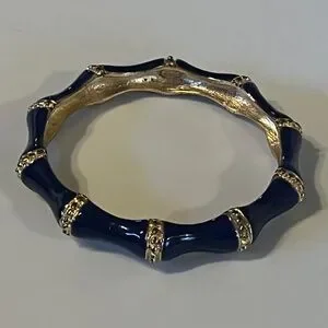 Color: Blue enamel with gold-tone bamboo design