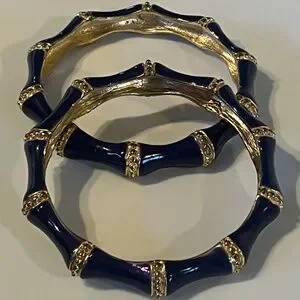 Navy Blue Bamboo Style Kenneth Jay Lane Bangle Bracelets (Set of 2)