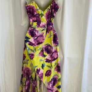 Multicolored polyester blend (98% Polyester, 2% Spandex). Hourglass. V-neck. Sleeveless. Back zipper closure. Imported.
