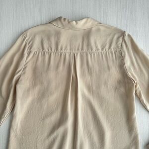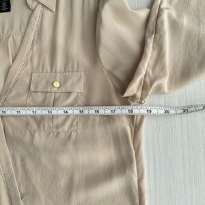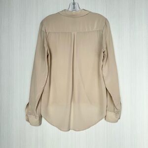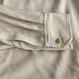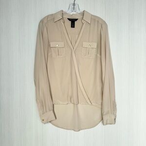 WHBM Silk Utility Blouse Size 4 Tan Long Sleeve Surplice V Neck High Low Casual