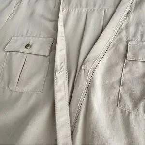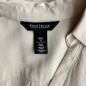 White House Black Market Blouse Utility Neutral Casual Office Girlboss Summer Spring Business Beige Shirt WHBM Top Slip-on Safari look