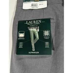 NWT LAUREN Ralph Lauren Pants Men 36x32 Gray Classic Fit Ultraflex Performance