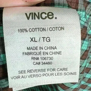 Vince Men’s Plaid Long Sleeve Button-Down Dress Shirt Brown and Green Size XL