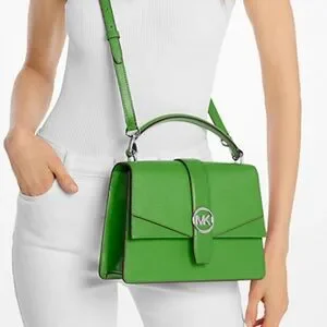 Michael Kors Greenwich Md Saffiano Leather Satchel Crossbody Shoulder Jungle Gre