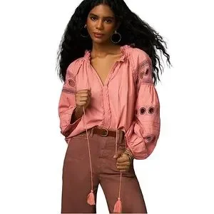 Anthropology Forever That Girl Long-Sleeve V-Neck Peasant Blouse runs large