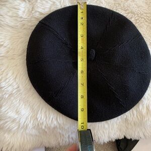 This chic black beret is a must-have accessory for any wardrobe. Its classic design adds a touch of sophistication to any outfit. Worn once.