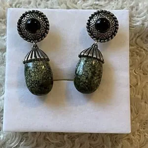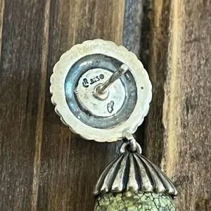 Capture the essence of elegance with these Carolyn Pollack sterling silver Southwestern, Ethnic, Bohemian-style dangle/drop earrings featuring lustrous green serpentine stones complemented by the subtle allure of aventurine. These handmade earrings are perfect for formal occasions. Made of 925 sterling silver, these earrings are in very gently pre-owned, perfect condition with little to no signs of wear, ensuring their timeless appeal endures.