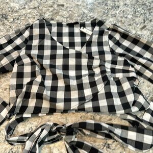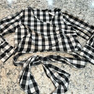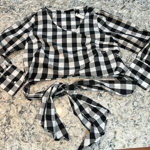 Soncy | Black & White Gingham Tie Waist Long Button Sleeve Wrap Shirt Size 12