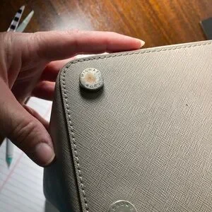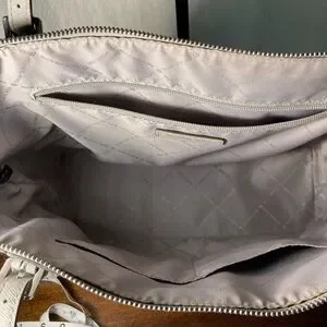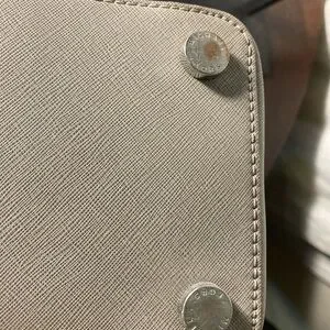 Elevate your style with this elegant tote bag from Michael Kors. Perfect for any occasion, this bag combines sophistication and functionality. Rarely used! See pics only cal out is feet are a little rubbed see pics! Measures 10.5x16