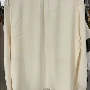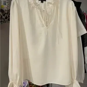 This elegant cream blouse by J. Crew showcases stylish puff sleeves with cuffed ends and a charming ruffled design. Its soft, lightweight fabric and classic silhouette make it a versatile piece for any occasion.