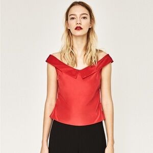 [Zara] Red Ballerina Off Should Top