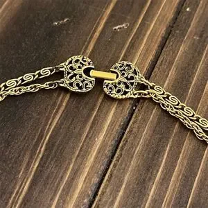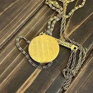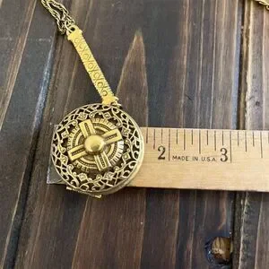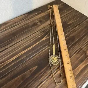 Capture the essence of timeless elegance with this gold-tone vintage Victorian-style necklace. Its intricate Byzantine chain design and engraved medallion locket pendant exude a charm that harkens back to a bygone era. Perfect for a range of occasions, from anniversaries and birthdays to weddings and holiday celebrations, this necklace is a versatile addition to any jewelry collection. The standard jewelry clasp ensures a secure fit, allowing you to carry a piece of history with confidence. Ideal for gifting or as a treat to yourself, it's a classic piece that complements both modern and traditional wardrobes. This pre-owned treasure is in very gently pre-owned condition, showing little to no signs of wear, ready to continue its story with you.