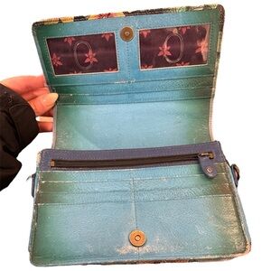 Anuschka Hand painted Colorful Floral Scenic Crossbody Small Leather Bag