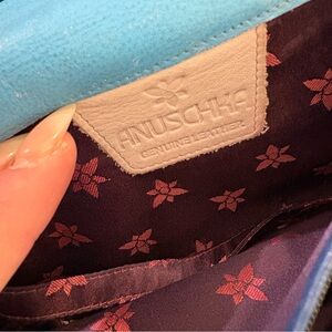 Stylish blue leather crossbody bag by Anuschka. Perfect for everyday use.