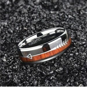 🎉HP🎉 New 8mm Tungsten Koa Wood Arrows Inlay Band Ring