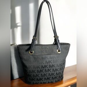 Michael Kors Black Tote Bag signature logo embossed MK