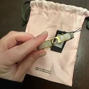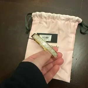 Gorgeous set of Kate Spade jewelry- pendant necklace, stud earrings, and hinge bangle bracelet. Gold tone metal & mother of pearl inlay. Earrings & necklace worn only once, bracelet never worn and still with tag.