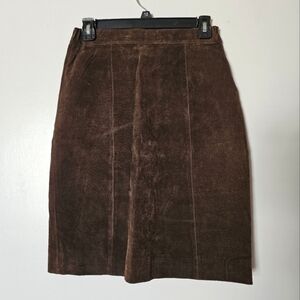 Vintage Pelle genuine leather brown midi high-rise straight skirt Size 8