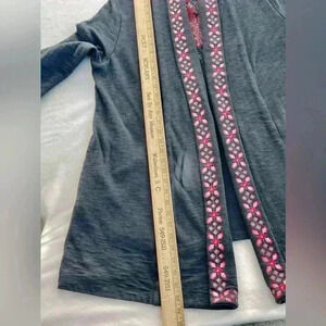 J Jill Med open style embroidered duster sweater jacket dark, gray, beautiful