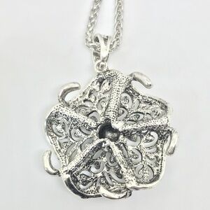 New; never worn; faux silver charm with blue gemstones; 18” hang with charm; lobster claw closure