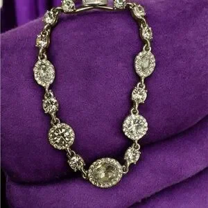 This elegant silver bracelet features sparkling crystals, perfect for adding a touch of glamour to any outfit.