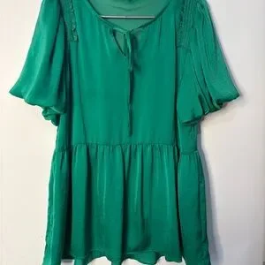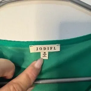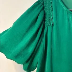 This vibrant green blouse from JODIFL features flutter sleeves and a charming tie front detail. The short sleeves and ruffled design add a touch of elegance, while the lightweight fabric ensures comfort and style. Perfect for a casual yet chic look, this blouse is a versatile addition to any wardrobe.