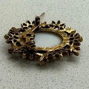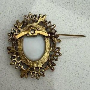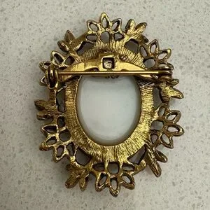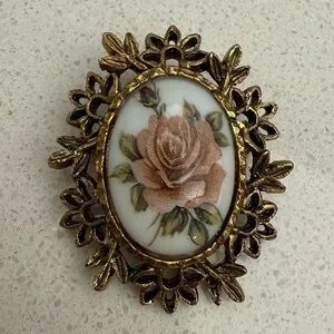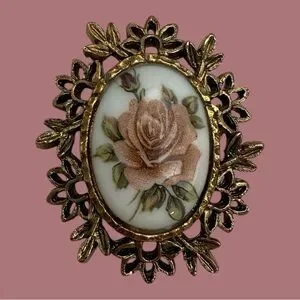 Vintage Rose Cameo Brooch Gold Tone Ceramic
